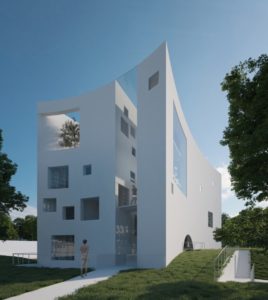 Novou budovu, která vzešla z architektonické soutěže v roce 2019, navrhl ateliér A 69 – architekti, s. r. o. Od prvotní studie po současnost je u projektu architekt Prokop Tomášek, jenž pochází z Liberce a Turnov dobře zná ze svého mládí. Unikátní tvar a název „knihovna ve skalách“ odkazuje na dominantu regionu – pískovcové věže. Tento motiv se promítl do celého konceptu: Centrem budovy je otevřená, čtyři podlaží vysoká vertikální hala. Knihovní fond bude umístěn na bočních lávkách a pavlačích, což dává návštěvníkům pocit pohybu jako ve skalní soutěsce. Konvexní stěny budou omítané horizontálně strukturovanou omítkou, která evokuje sediment pískovcových skal.