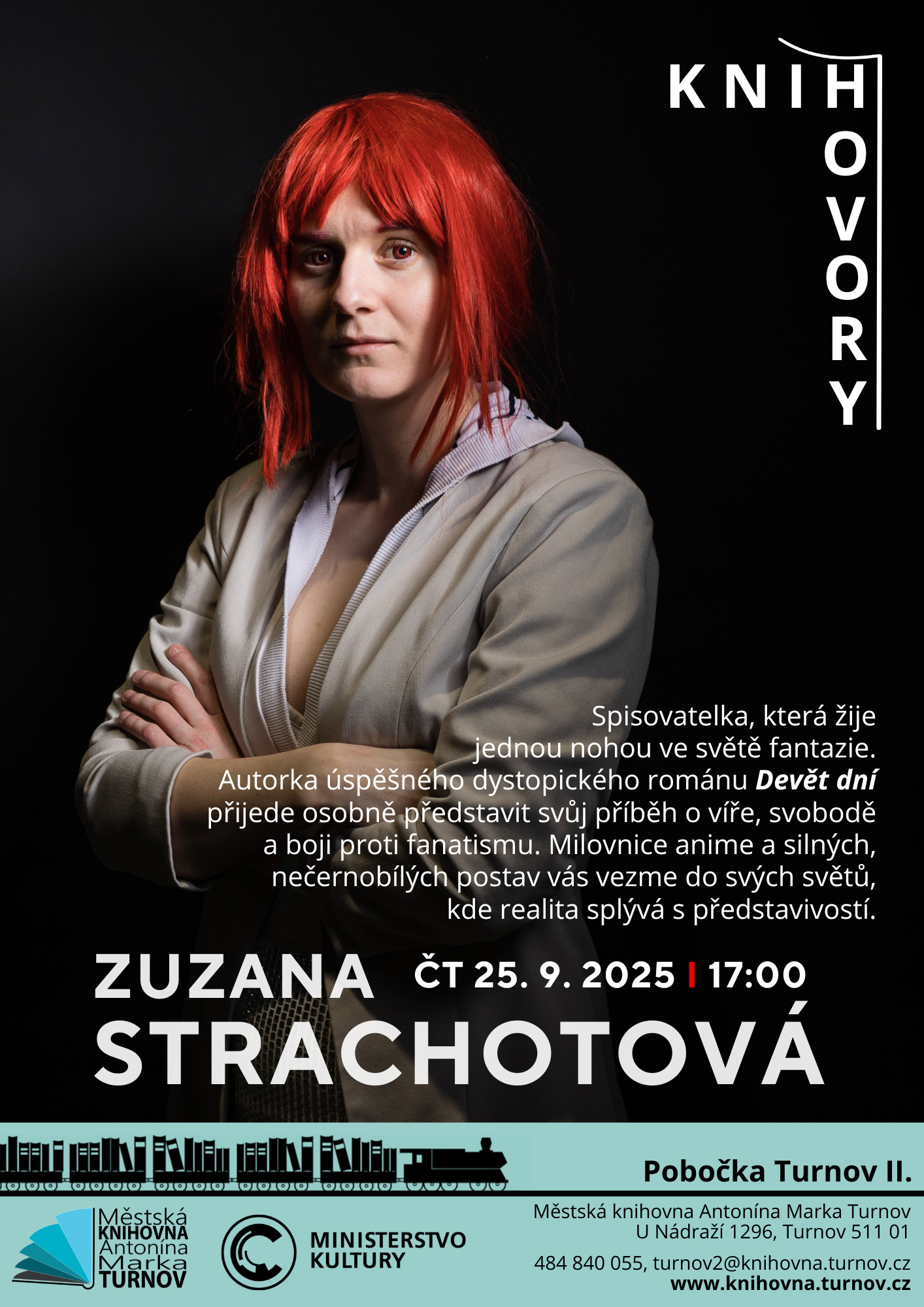 Autorka v současné době žije s rodinou v Hodkovicích nad Mohelkou a přijede do Turnova představit především svůj první román Děvět dní, který nedávno vyšel znovu v přepracované verzi u nakladatelství Epocha. Dále upozorní na fantasy sérii HEX, na které spolupracuje s Tomášem Koškem a také se dozvíme se mnoho dalšího z její plánované tvorby.