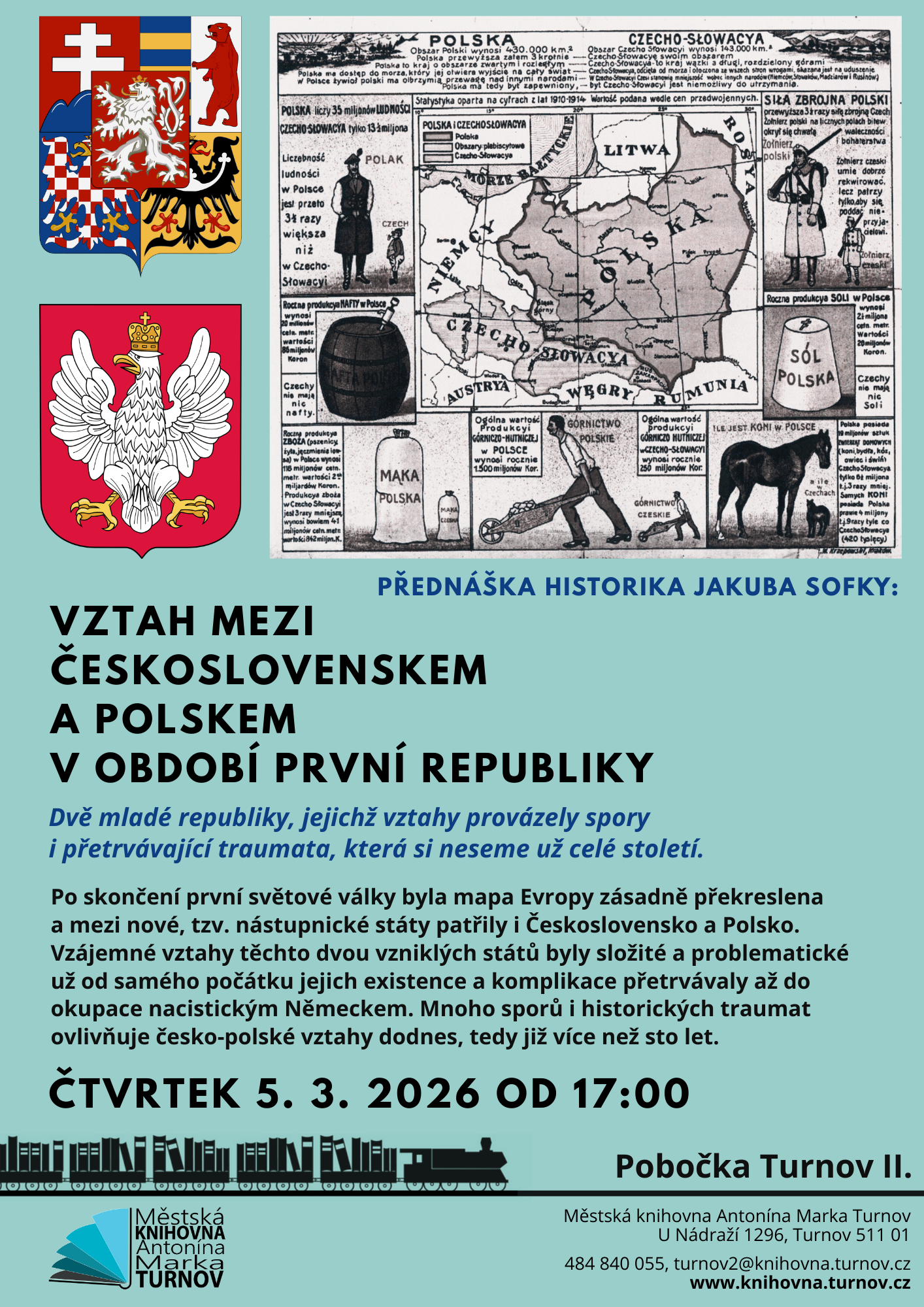 Po skončení první světové války byla mapa Evropy zásadně překreslena a mezi nové, tzv. nástupnické státy patřily i Československo a Polsko. Vzájemné vztahy těchto dvou nově vzniklých států byly složité a problematické už od samého počátku jejich existence a komplikace přetrvávaly až do okupace nacistickým Německem. Mnoho sporů i historických traumat ovlivňuje česko-polské vztahy dodnes, tedy již více než sto let. Přednáší historik Jakub Sofka.