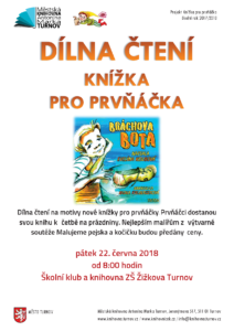 Dílny čtení spojené s předáním Knížky pro prvňáčka – Bráchova bota. Děti se seznámí také s knihovnou a vlastním půjčováním knížek. Uzavření projektu Už jsem čtenář - Knížka pro prvňáčka. Děti zároveň budou vyhodnoceny za výtvarnou soutěž Malujeme pejska a...