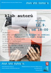 Píšete? Přijďte představit svou tvorbu, diskutovat o psaní a literatuře a načerpat novou inspiraci. Přátelská setkání nad šálkem čaje probíhají pravidelně každý měsíc v čítárně na oddělení pro dospělé. Klub je určen všem básníkům, prozaikům i písničkářům od šestnácti...