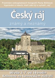 Turnovské léto 2019 bude žít i na Turnově II! Každou středu tu budou probíhat zajímavé přednášky nebo hudebně-literární akce. Hned na první přednášce přivítáme populární cestovatelku a fotografku Pavlu Bičíkovou, která nám představí náš region, jak ho ale neznáme!...