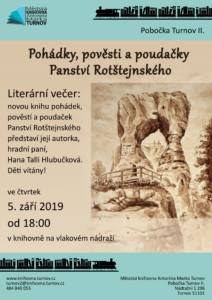 Literární pořad s kastelánkou hradu Rotštejn Hanou Talli Hlubučkovou nad její novou knihou o regionálních pověstech.
