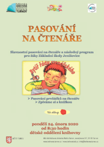 Slavnostní pasování na čtenáře pro prvňáčky ze ZŠ Jenišovice se uskuteční společně s pořadem Zpíváme si s knížkou.