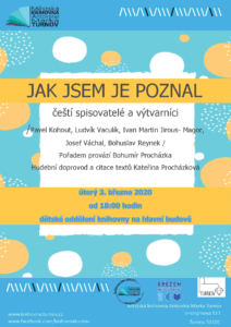 Literární pořad nejen k výročí knihovny, ale také v rámci programu Březen - měsíc čtenářů. České spisovatele a výtvarníky nám přiblíží Ing. Bohumír Procházka z jičínského klubu literárních autorů. Podíváme se na osudy Pavla Kohouta, Ludvíka Vaculíka, Ivana Martina...