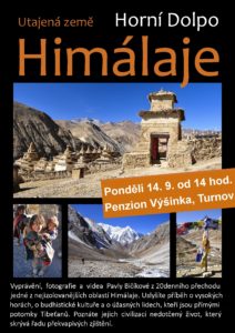 Cestopisná přednáška Pavly Bičíkové plná vyprávění, nádherných fotografií a videí z její dvacetidenní cesty přechodu Himálají. Přednášky jsou určeny pro širokou veřejnost v rámci projektu Aktivně ve stáří.