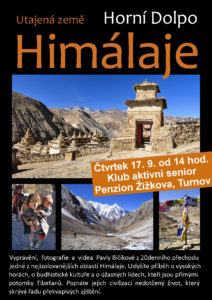 Cestopisná přednáška Pavly Bičíkové plná vyprávění, nádherných fotografií a videí z její dvacetidenní cesty přechodu Himálají. Přednášky jsou určeny pro obyvatele penzionu Žižkova, návštěvníky Klubu aktivní senior a širokou veřejnost v rámci projektu Aktivně ve stáří.