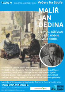 Přednáška o českém malíři Janu Dědinovi u příležitosti 155. výročí narození a 70. výročí úmrtí. Přednáší historička umění Alžběta Semrádová, autorka publikace Jan Dědina, malíř, která přibližuje životní příběh umělce, jehož jméno je spjato s naším regionem. V obci...
