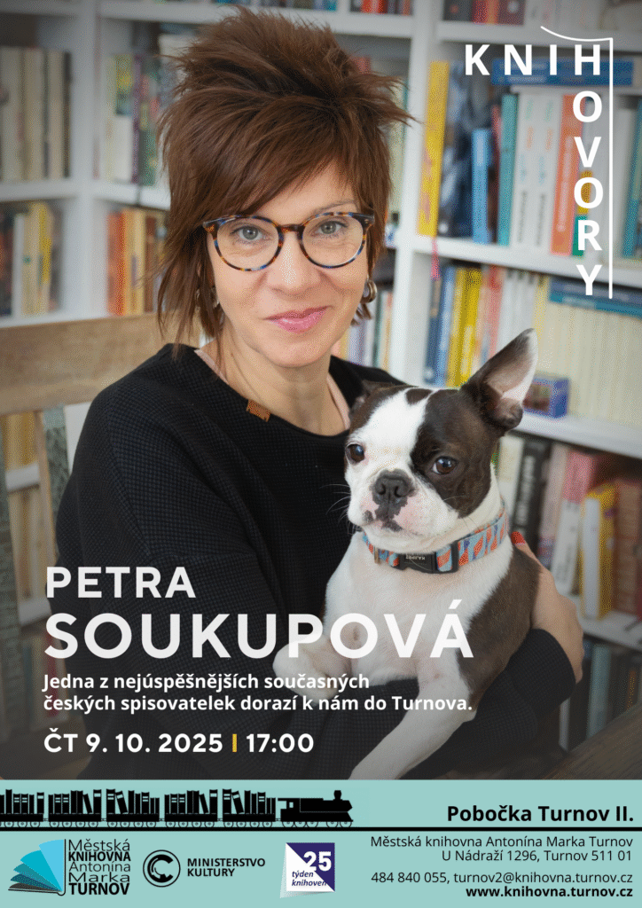 Petra Soukupová patří k nejúspěšnějším současným českým spisovatelkám. Do Turnova přijede představit především její poslední román Marta děti nechce a také novou audioknihu Nic nebude jako dřív. Akci moderuje Bára Suchá.