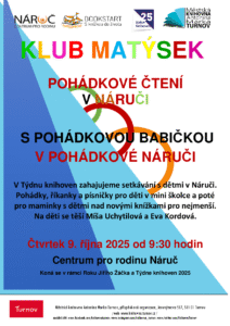 V Týdnu knihoven 2025 opět zahajujeme pohádková setkávání v Centru pro rodinu Náruč. A to nejen v mini školce, ale také pro maminky s dětmi. Sejdeme se nad novými knížkami pro nejmenší, nebudou chybět pohádky, říkanky a písničky. Na...