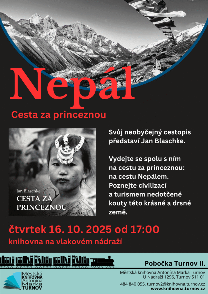 Svůj neobyčejný cestopis představí Jan Blaschke, absolvent turnovského gymnázia. Vydejte se spolu s ním na cestu za princeznou: na cestu Nepálem. Poznejte civilizací a turismem nedotčené kouty této krásné a drsné země.