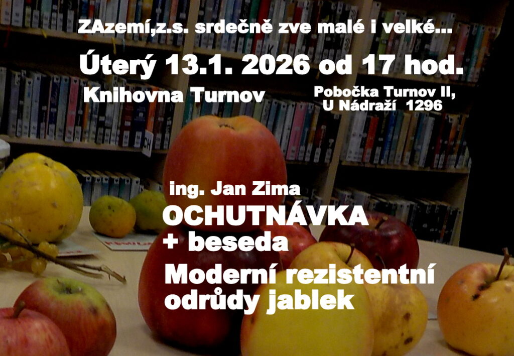 Přednáška se šlechtitelem Ing. Janem Zimou pořádána ve spolupráci se spolkem ZAzemí. Přednáška je doplněna o ochutnávku! Vstupné dobrovolné.