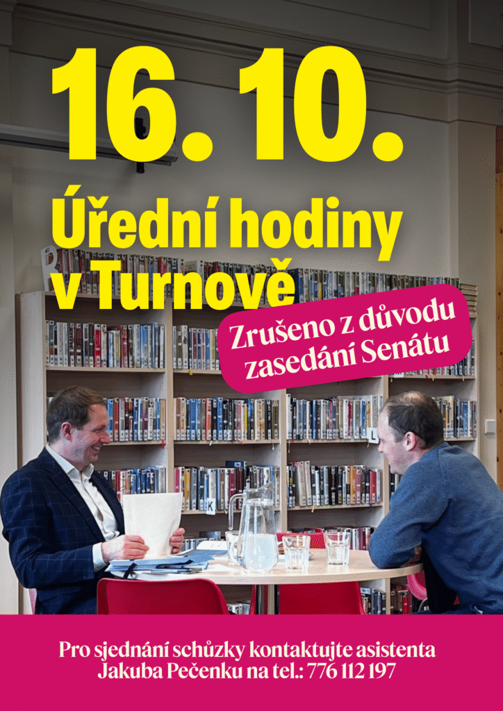 Senátor Ondřej Lochman, který byl zvolen i za náš region, bude pravidelně jednou měsíčně mít úřední dny i u nás v Turnově. Můžete se s ním osobně setkat v prostorách naší knihovní pobočky na vlakovém nádraží v Turnově II....