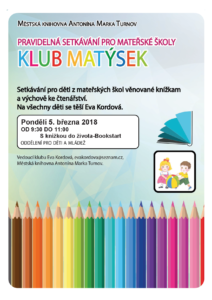 Nový projekt výchovy ke čtenářství S knížkou do života se stává další součástí činnosti Klubu Matýsek, který je určen nejen rodinám s dětmi, ale také dětem mateřských škol až do předškolního věku. Na děti se v pestrém programu a čtení těší Eva...