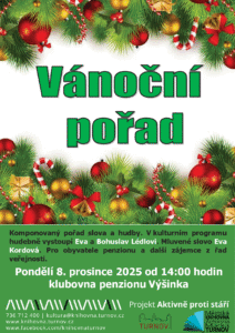 Komponovaný pořad slova a hudby na téma Adventu a Vánoc. V programu vystoupí Eva a Bohuslav Lédlovi. Průvodní slovo Eva Kordová. Koná se v rámci projektu Aktivně ve stáří a to nejen pro obyvatele penzionu Výšinka, ale další zájemce...